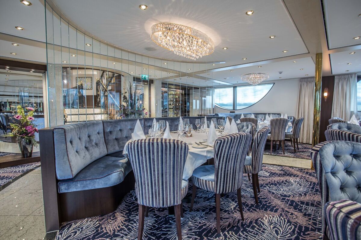 Eens aan boord van het schip zullen we betoverd zijn door de elegante sfeer. De 88 kajuiten zijn perfect uitgerust met douche en toilet, Beauty producten van RITUALS®, haardroger, flatscreen-TV, minibar, Nespresso®-apparaat en airco & verwarming. Fitnesscentrum met loopband, fiets en gewichten. Zwembad en golf op het zonnedek. Lift aanwezig. Laat U verwennen met een gastronomische maaltijd in het hoofdrestaurant “Riverside” of in “Viva’s Bistro” en geniet van een drankje in de panoramalounge. Kortom, hier kunt U volledig ontspannen en door de uitstekende service wordt elke wens vervuld!